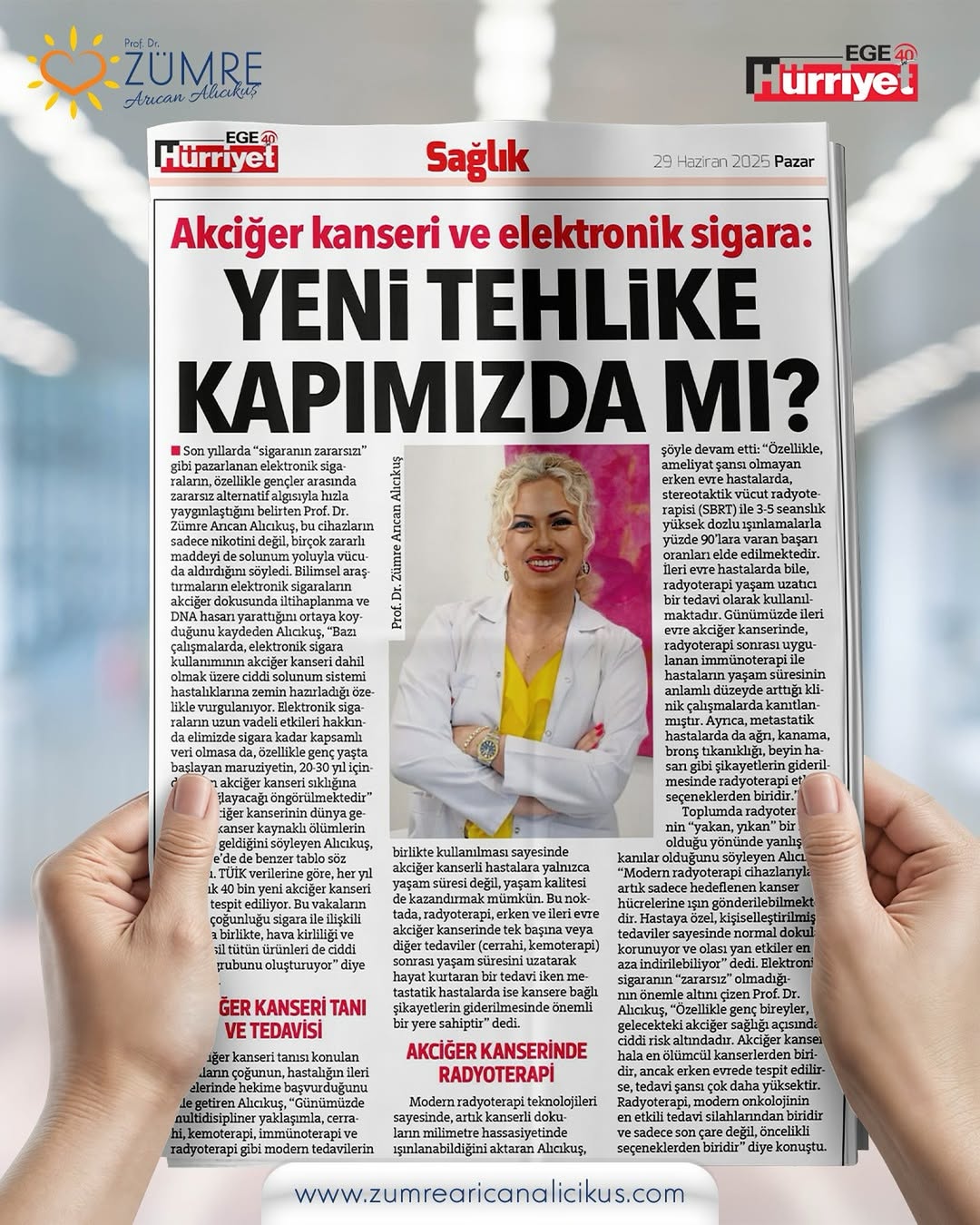 Akciğer kanseri ve elektronik sigara: Yeni tehlike kapımızda mı? Son yıllarda “sigaranın zararsızı” gibi pazarlanan elektronik sigaraların, özellikle gençler arasında zararsız alternatif algısıyla hızla yaygınlaştığını belirten Prof. Dr. Uncategorized @tr 15 Haziran 202523 Temmuz 2025 Zümre Arıcan Alıcıkuş